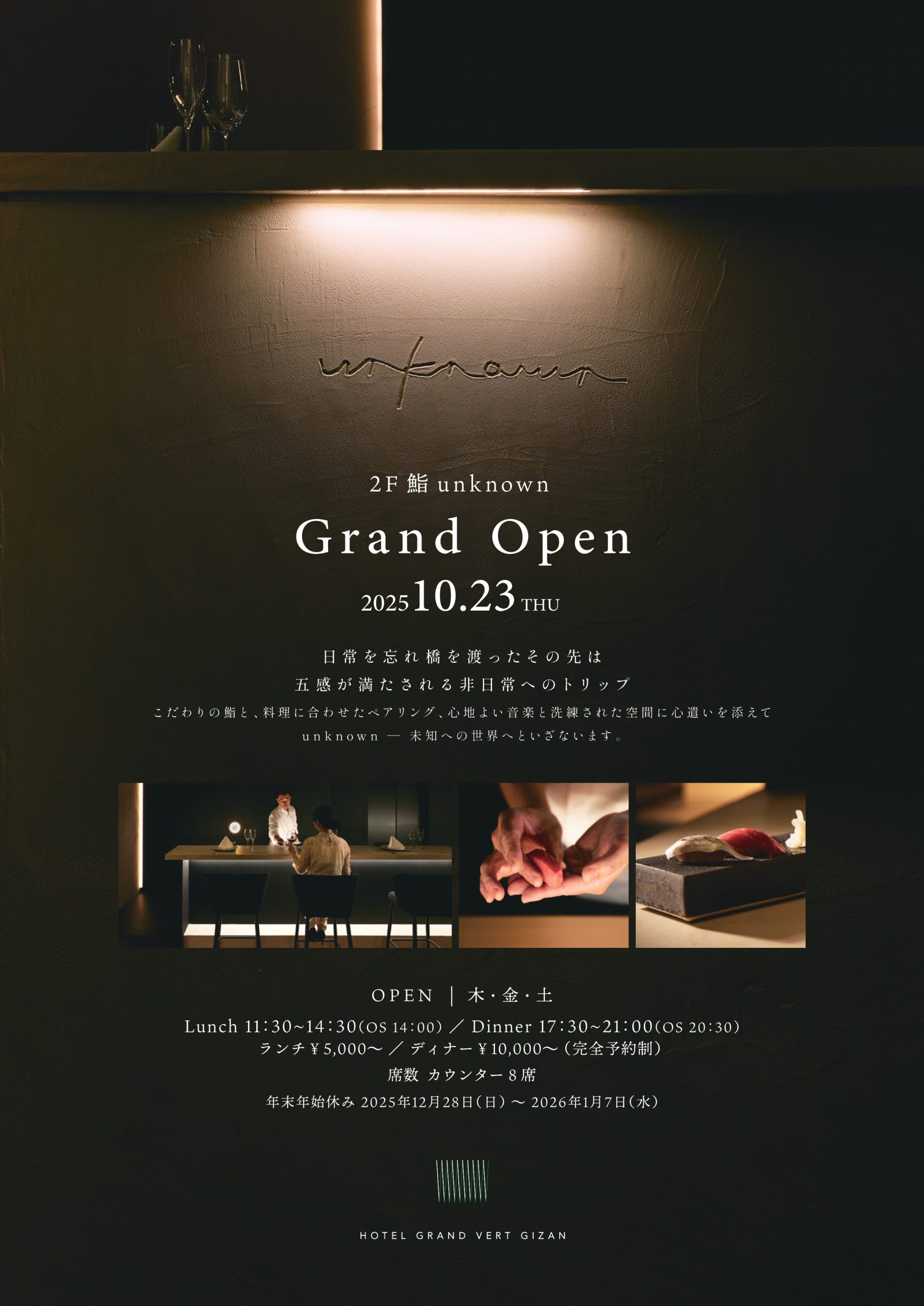 2025年10月23日(木) 2階 鮨レストラン「unknown」 Grand Open