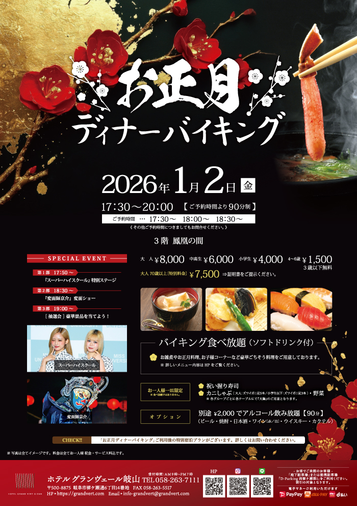『スーパーハイスクール』特別ステージ、『変面師京介』変面ショー、[抽選会]で、新年を大いに盛り上げます。